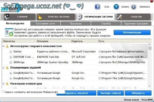 • Ускорение запуска: Позволяет управлять программами, запускающимися вместе с операционной системой, отключая ненужные и ускоряя загрузку Windows.