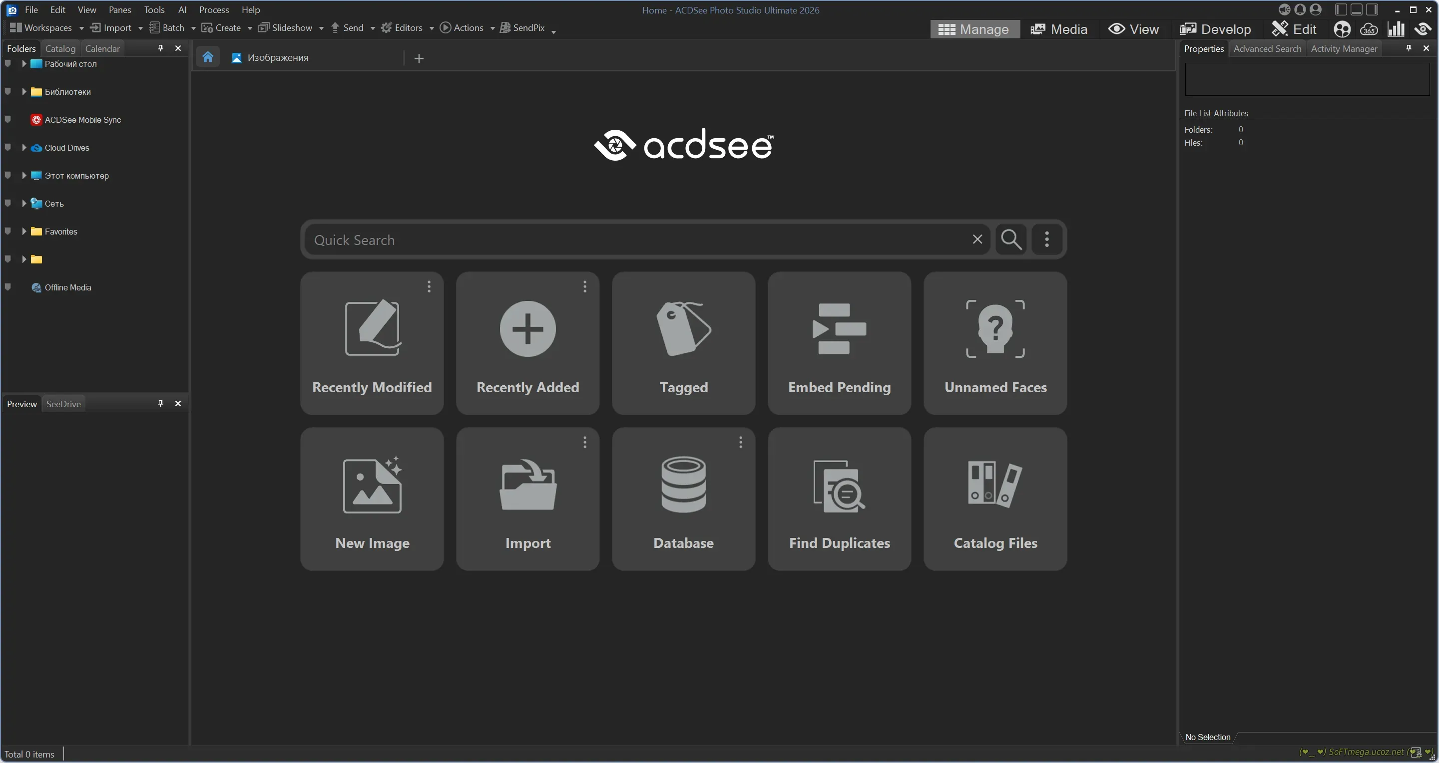 Этот комплексный пакет - настоящий кладезь возможностей для каждого, кто серьезно относится к своим цифровым фотографиям. От начинающих энтузиастов до опытных профессионалов, ACDSee Photo Studio Ultimate 19.0.0.4295 предлагает инструменты для полного цикла работы с изображениями: от организации и редактирования до публикации.