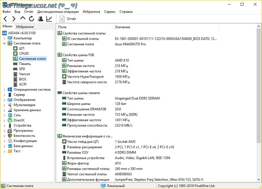 • Материнская плата: Производитель, модель, чипсет, BIOS.