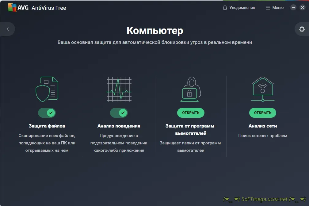 • AVG AntiVirus FREE сканирует файлы и программы в режиме реального времени, предотвращая проникновение угроз еще до того, как они смогут нанести вред.