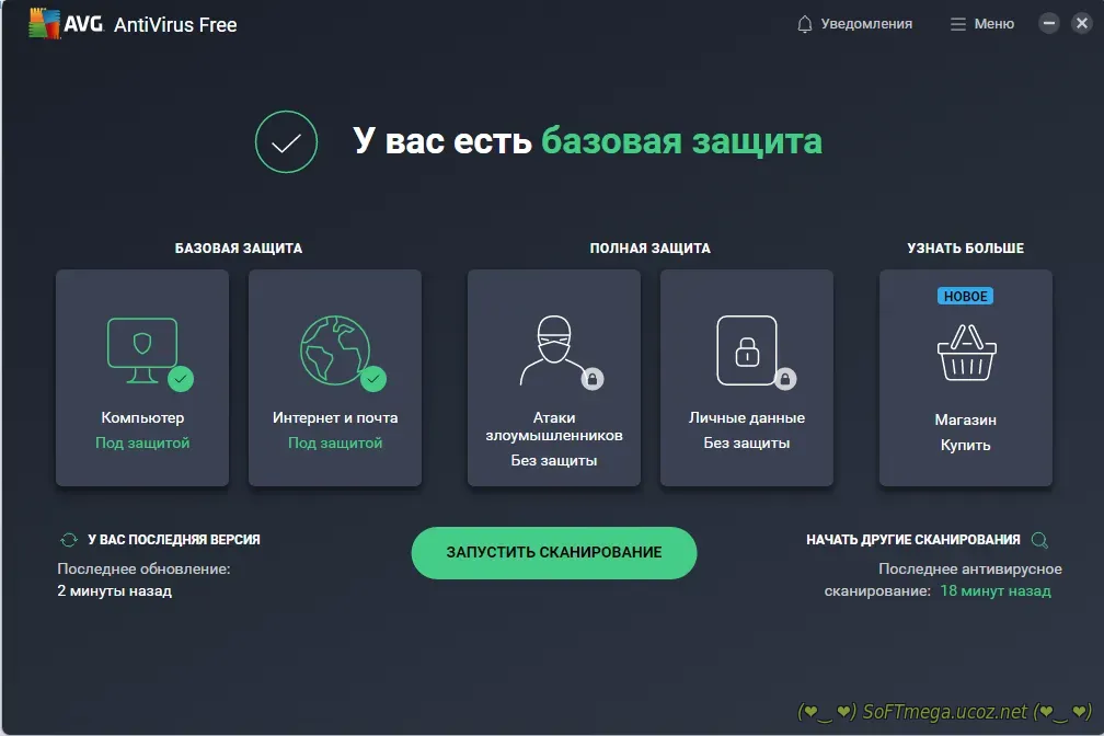 • AVG AntiVirus FREE предоставляет комплексную защиту от широкого спектра угроз, включая вирусы, трояны, шпионское ПО, программы-вымогатели и другие вредоносные программы. Он постоянно обновляет свою базу данных сигнатур, чтобы оперативно реагировать на появление новых угроз.