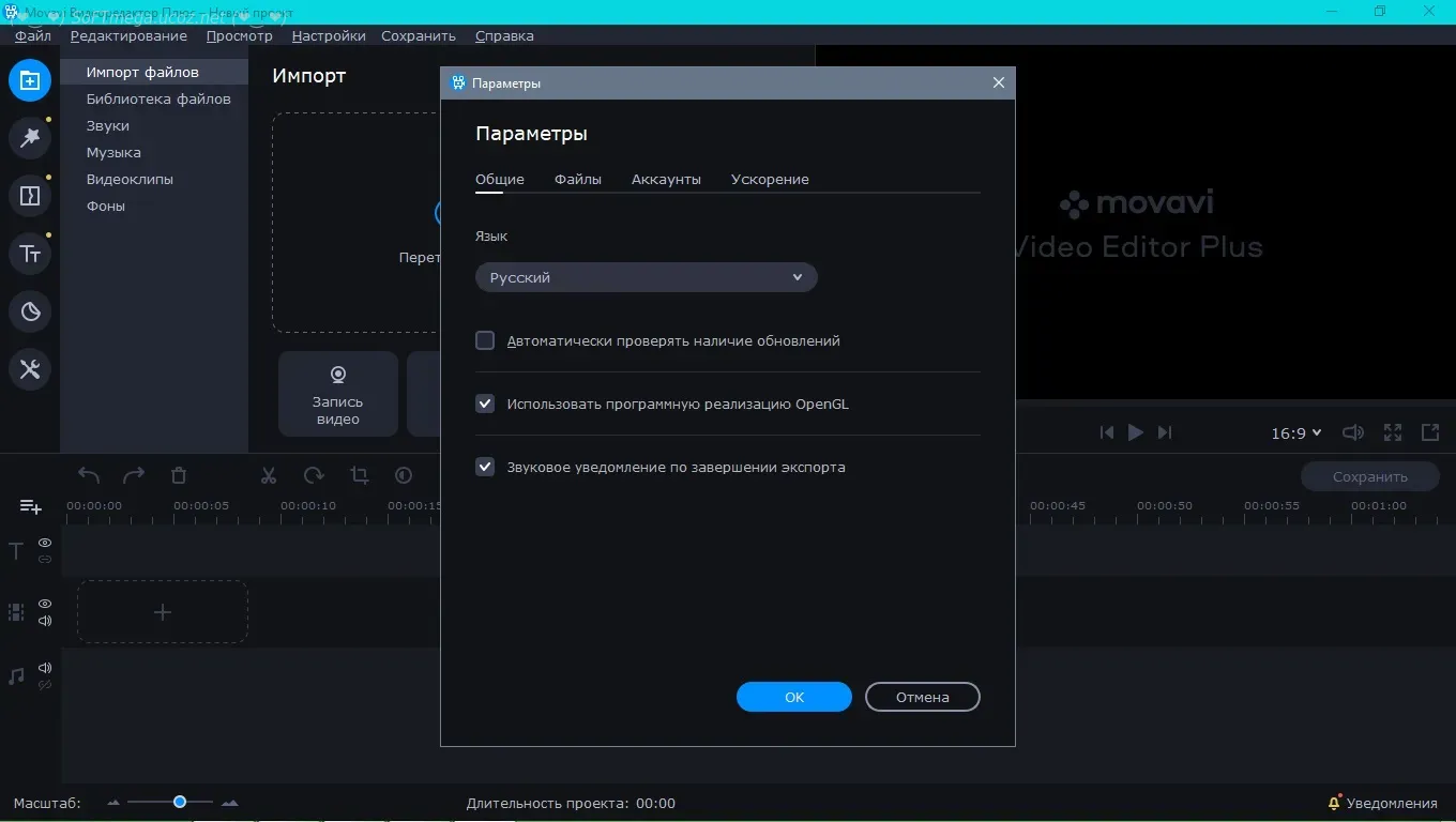 • Поддержка различных форматов: Movavi Video Editor Plus поддерживает широкий спектр видео, аудио и графических форматов, что позволяет работать с любыми файлами.