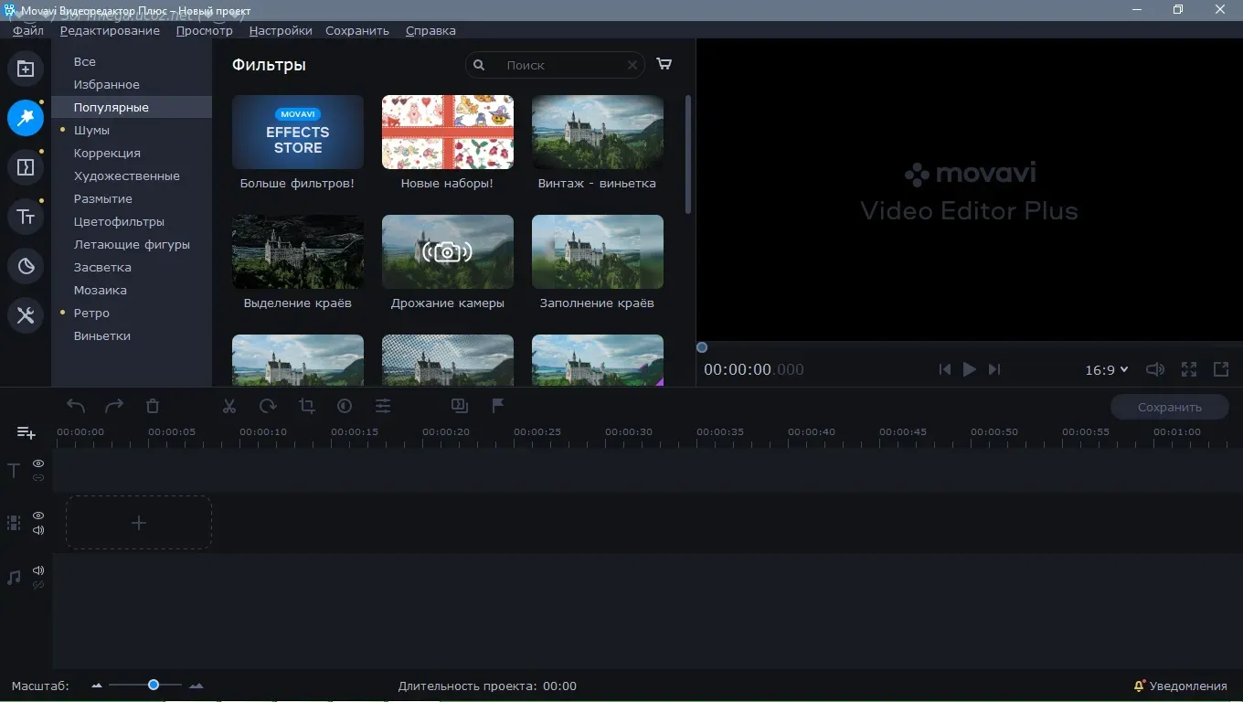 • Простой и интуитивно понятный интерфейс: Даже если вы никогда не занимались видеомонтажом, вы быстро освоите Movavi Video Editor Plus. Интерфейс разработан таким образом, чтобы быть максимально понятным и удобным в использовании.